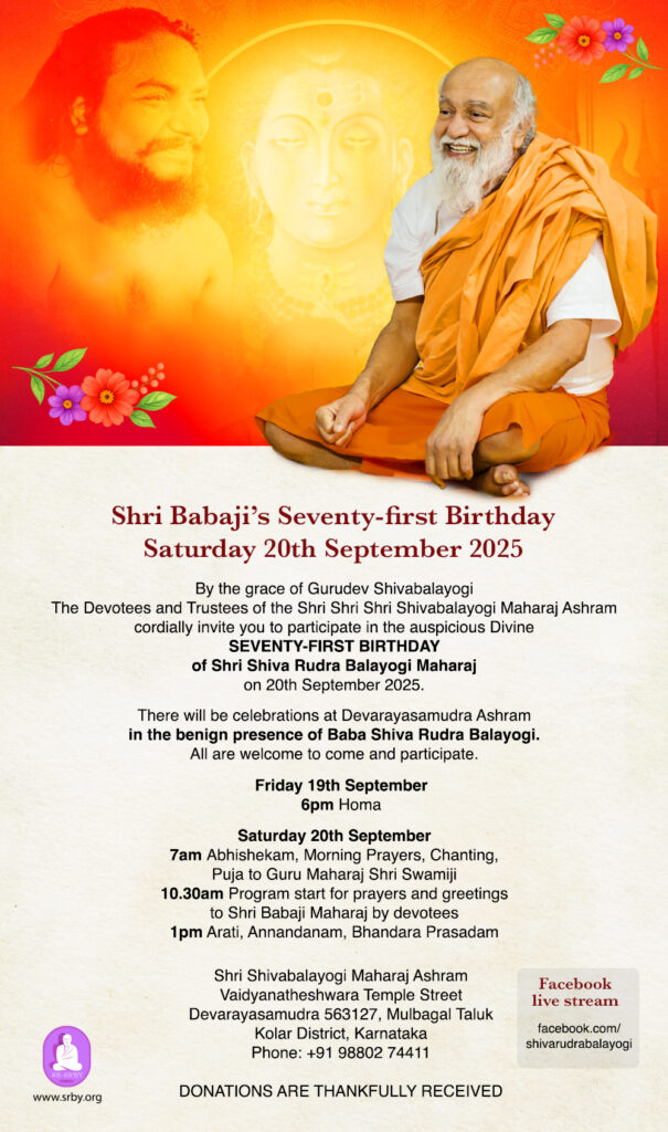 Invitation to Shri Babaji’s 71st Birthday – 20th September, South India