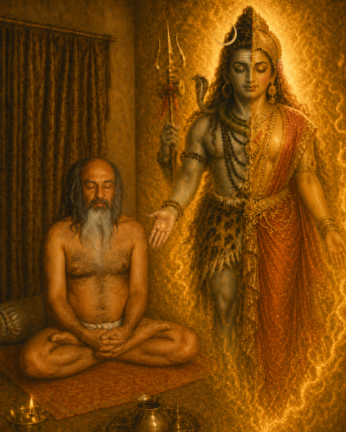 On the auspicious day of Kartik Shuklapaksha, 16th November 1999, he was gently brought out of samadhi by a wondrous vision. Before him appeared the divine form of Ardhanarishwara—Lord Shiva and Mother Parvati as one unified presence.