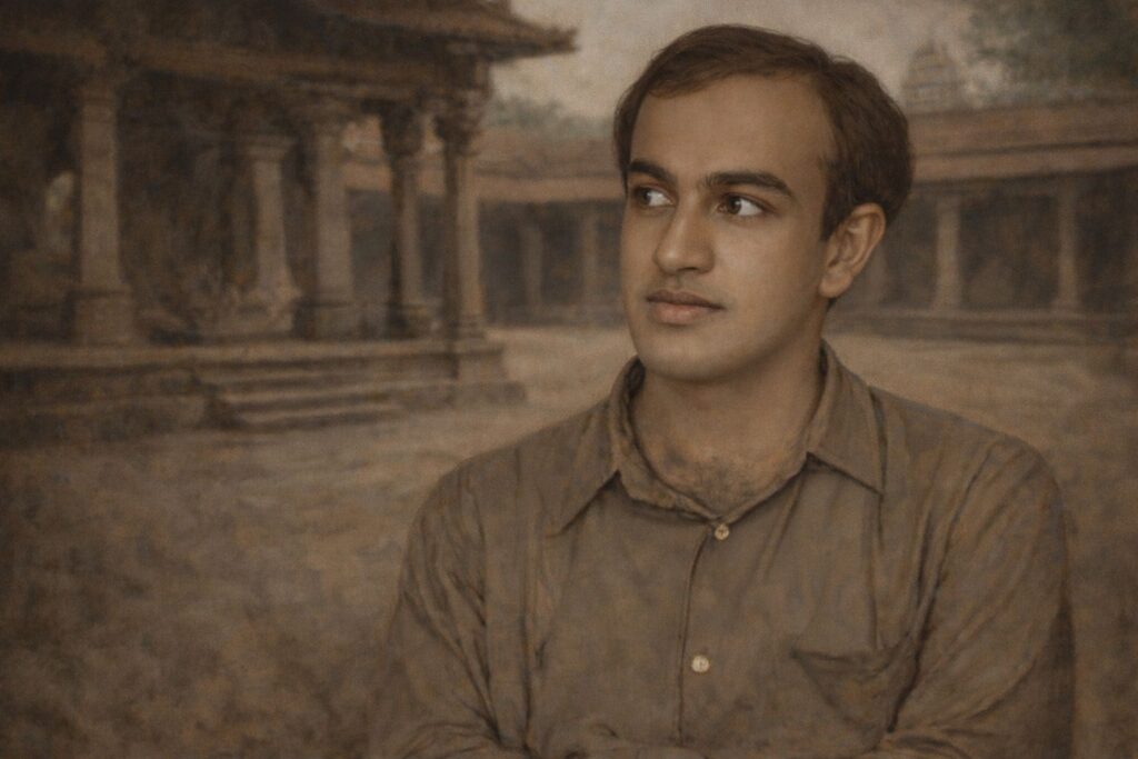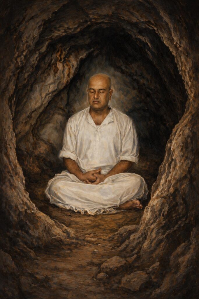 Driven by this inner quest, he began to spend long hours in solitude during his teenage years, often retreating to the caves of the sacred Chamundi Hills near his home. There, in silence and contemplation, he turned his mind inward, seeking something beyond words and concepts.