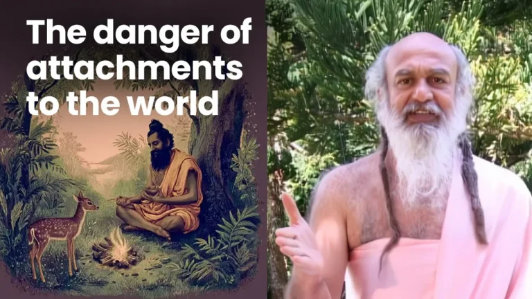 Shri Babaji tells the story of Jadabharata, which His Master Shri Shivabalayogi Maharaj used to narrate. The story warns that having attachments to the world
